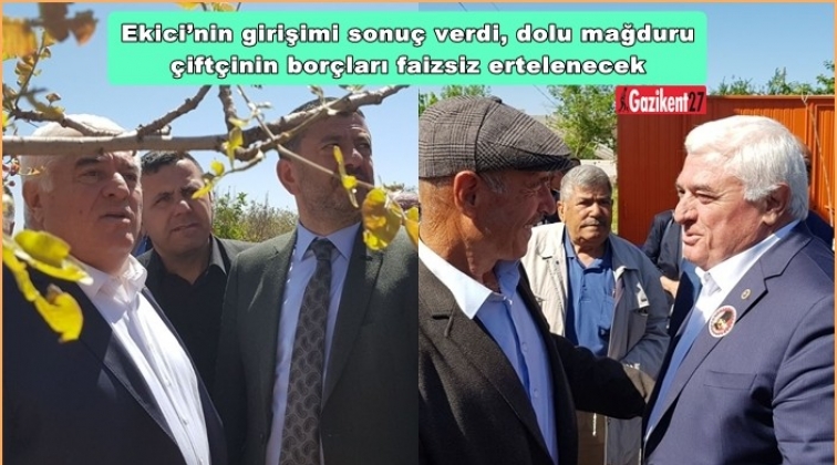 Gaziantep’te meydana gelen dolu yağışı nedeniyle zarara uğrayan çiftçinin borçlarının faizsiz ertelenmesi için soru önergesi ve kanun teklifi hazırlayan CHP Gaziantep Milletvekili Akif Ekici’nin girişimleri sonuç verdi.