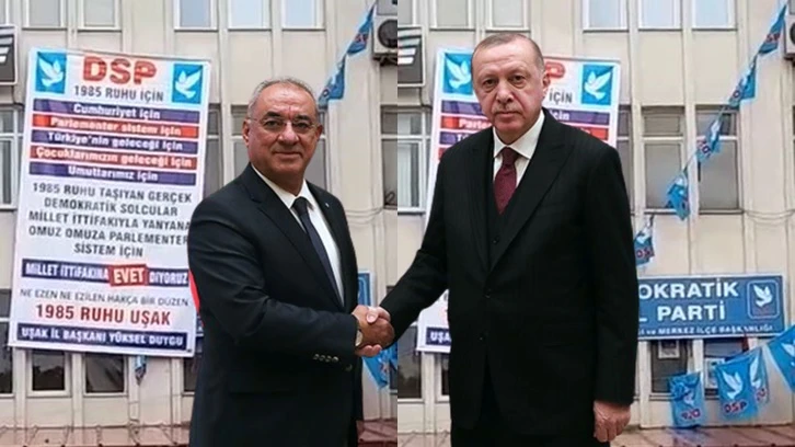 Cumhur İttifakı’na kararına bir itiraz da Uşak’tan geldi. DSP Uşak İl Başkanlığı Millet İttifakı’nı destekleme kararı aldı. Partinin Uşak İl Başkanı Yüksel Duygu, Millet İttifakı’nı destekleme kararlarını isminin de yazılı olduğu bir pankartta duyurdu.