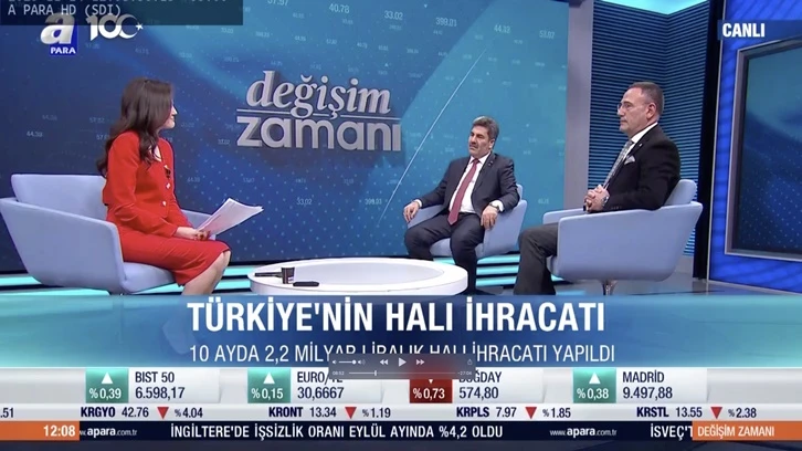 Güneydoğu Anadolu Halı İhracatçıları Birliği Başkanı Zeynal Abidin Kaplan A Para TV’de yayınlanan Değişim Zamanı programına katılarak Sevda Hallaç’ın sorularını yanıtladı.