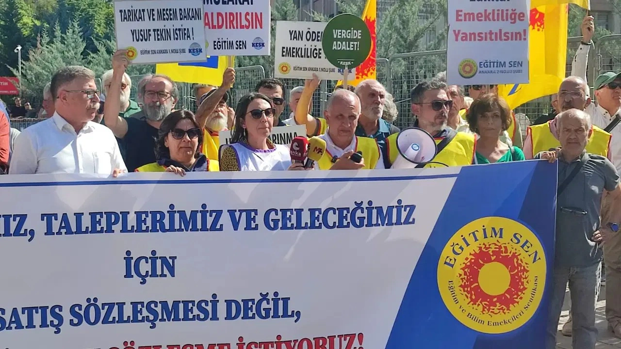 Eğitim Sen sekizinci dönem toplu sözleşme taleplerini Milli Eğitim Bakanlığı (MEB) önünden dile getirdi. Eğitim Sen Genel Başkanı Kemal Irmak yaptığı açıklamayla taleplerini sıraladı. KESK Eş Genel Başkanı Ahmet Karagöz de açıklamaya katıldı. Karagöz, “Bugün kamu çalışanları yoksulluk sınırı altındaki ücretlerle çalışmak zorunda bırakılıyor. Bizler alternatif toplu sözleşme masaları kuracağız. Alanlarda sokaklarda olacağız. Kamu emekçilerinin taleplerini ileteceğiz” dedi.