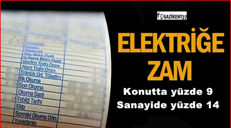 Elektriğe konutta yüzde 9, sanayide 14 zam geldiği duyuruldu. Yeni fiyatlar yarından itibaren geçerli olacak.