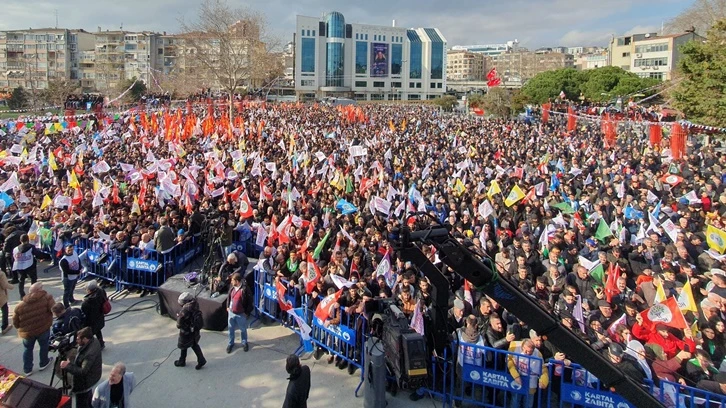 Neden İstanbul’dan başladık? Çünkü bu zulüm ve yıkım iktidarı İstanbul’u faşizmin üssü yapmak istiyor. Türkiye’ye giydirmek istedikleri rejimi burada pişirmek istiyorlar ama biz dedik ki ‘Hayır, İstanbul faşizme karşı dimdik duracak ve bunu gösterecek'. İşte gösteriyoruz hep birlikte. ‘İstanbul’u emeğin ve özgürlüğün, demokrasinin üssü yapacağız’ dedik. İşte sözümüzün karşılığı sizin yüreklerinizin gümbür gümbür sesidir.