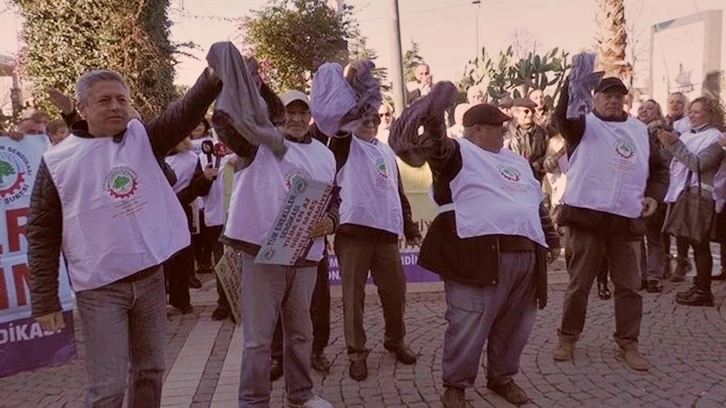 Yılmaz ve beraberindeki çok sayıda emekli, aynı anda ceplerinden iç çamaşırlarını çıkarıp sallamaya başladı.