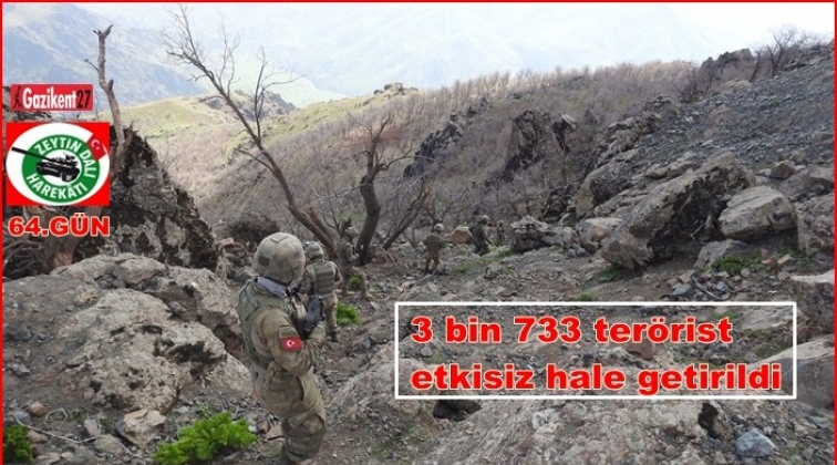 Cumhurbaşkanı Recep Tayyip Erdoğan, Afrin’de 3 bin 733 terör örgütü mensubunun etkisiz hale getirildiğini açıkladı.