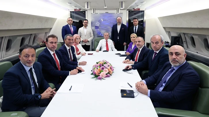 AKP Genel Başkanı ve Cumhurbaşkanı Recep Tayyip Erdoğan, Almanya'da, Türkiye ile Hollanda arasında oynanan 2024 Avrupa Şampiyonası çeyrek final maçının ardından uçakta gazetecilere açıklamalarda bulundu, soruları yanıtladı.