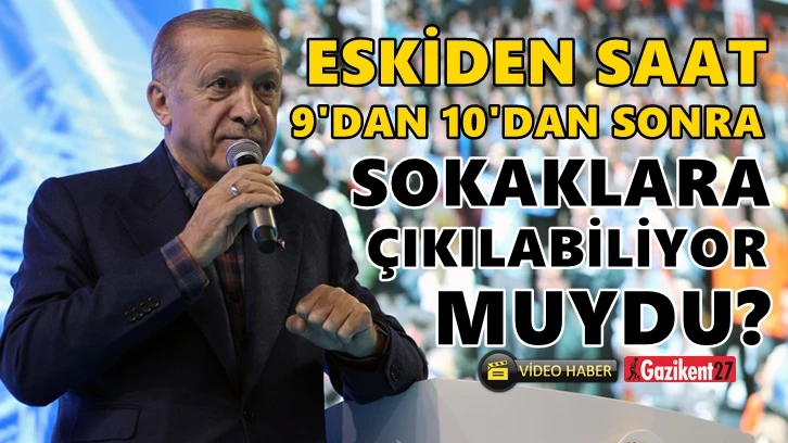 Cumhurbaşkanı Erdoğan, "Eskiden akşam saat 9'dan 10'dan sonra sokaklara çıkılabiliyor muydu? Şimdi herkes restoranlarda, kafeteryalarda yemeğini yiyor, sabaha kadar eğleniyor. Nerden nereye..." ifadelerini kullandı.