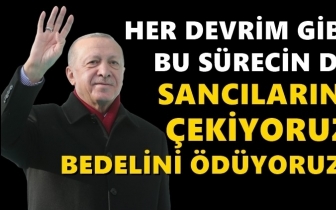 Ekonomideki gidiÅŸata da deÄŸinen ErdoÄŸan, "Her deÄŸiÅŸim gibi, her devrim gibi bu sürecinde sancılarını yaşıyor, bedellerini ödüyoruz. Tüm bu fedakarlıklarımıza deÄŸecek. Salgın döneminde geliÅŸmiÅŸ ülkeler baÅŸta olmak üzere, dünyadaki dengelerin nasıl sarsıldığını hep beraber gördük. Åžu anda 19 ÅŸehir hastanesiyle sizi hizmetinizdeyiz. SaÄŸlık krizinin tetiklediÄŸi ekonomik sarsıntı henüz dinmemiÅŸken Ukrayna-Rusya Savaşıyla krizin nasıl derinleÅŸtiÄŸine ÅŸahit olduk. Türkiye güçlü altyapısı sayesinide nasıl salgının üstesinden geldiyse, yaÅŸadığı hayat pahalılığı sorununu da kısa sürede aÅŸacaktır" açıklamasında bulundu.Â