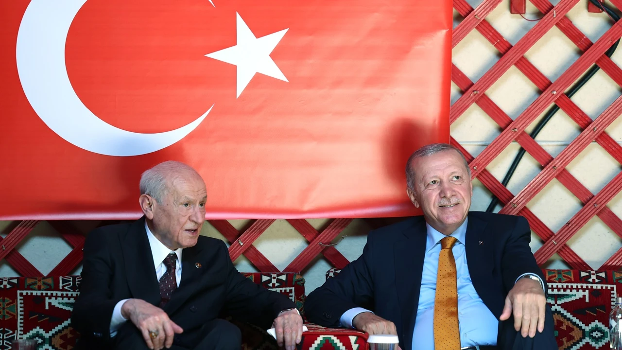 AKP'li Cumhurbaşkanı Recep Tayyip Erdoğan ile MHP Genel Başkanı Devlet Bahçeli, Ahlat Etkinlik Alanı'ndaki Han Çadırı'nda bir araya geldi. İki isim burada bir süre sohbet etti.