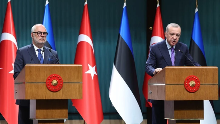 Türkiye'ye resmi ziyarette bulunan Estonya Cumhurbaşkanı Karisi ile ortak basın toplantısı düzenleyen Cumhurbaşkanı Erdoğan'ın AB mesajı dikkat çekti.