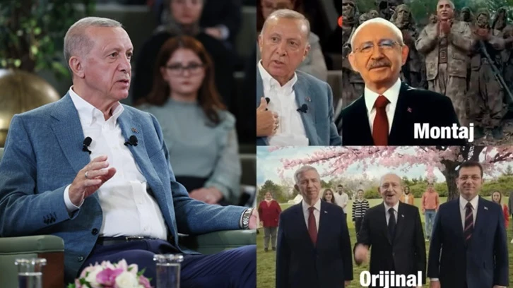 Cumhurbaşkanı Erdoğan, Cumhurbaşkanlığı Millet Kütüphanesi'nde gençlerin sorularını cevapladı. Daha önce İstanbul mitinginde de izlettirdiği montaj videoyu yeniden gösterdi. Erdoğan, Kılıçdaroğlu'nun reklam filmine montajla PKK lideri Murat Karayılan'ın eklenmiş halini gerçek gibi anlattı.