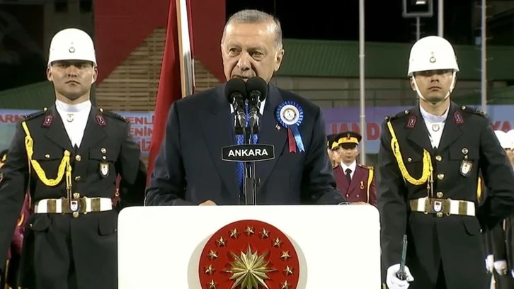 Jandarma ve Sahil Güvenlik Akademisinden, kurulduğu 2016'dan bugüne kadar 33'ü uluslararası öğrenci olmak üzere toplam 23 bin 546 gencin mezun olduğunu aktaran Cumhurbaşkanı Erdoğan, şunları kaydetti: "Bugün mezuniyet sevinci yaşayan her öğrencimiz, tıpkı selefleri gibi Türkiye'nin en gözde eğitim kurumlarından birinde eğitim aldılar. Bu çatı altında bulundukları süre boyunca evlatlarımız, mesleki becerileri yanında akademik, sosyal ve entelektüel yönlerini de geliştirdiler. Pratik ve teorik açıdan yoğun bir eğitimi alınlarının akıyla bitirerek üstlenecekleri vazifeye hazır hâle geldiler. Yeni mezunlarımız, Jandarma ve Sahil Güvenlik teşkilatlarımızın farklı kademelerinde görev alarak yüksek vazife şuuru içinde milletimize aşkla hizmet ettiler, bundan sonra da hizmet edeceklerdir."