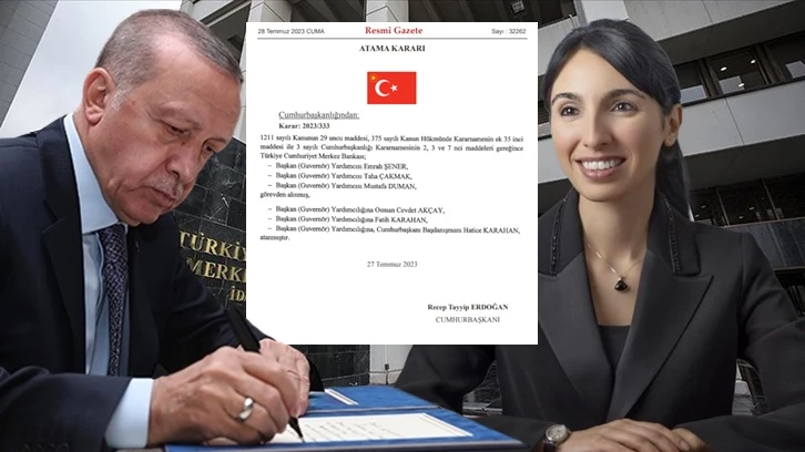 Cumhurbaşkanı Erdoğan Merkez Bankası başkan yardımcıları Emrah Şener, Taha Çakmak ve Mustafa Duman'ı görevden aldı. Yerlerine Osman Cevdet Akçay, Fatih Karahan ve Başdanışmanı Hatice Karahan'ı atadı.
