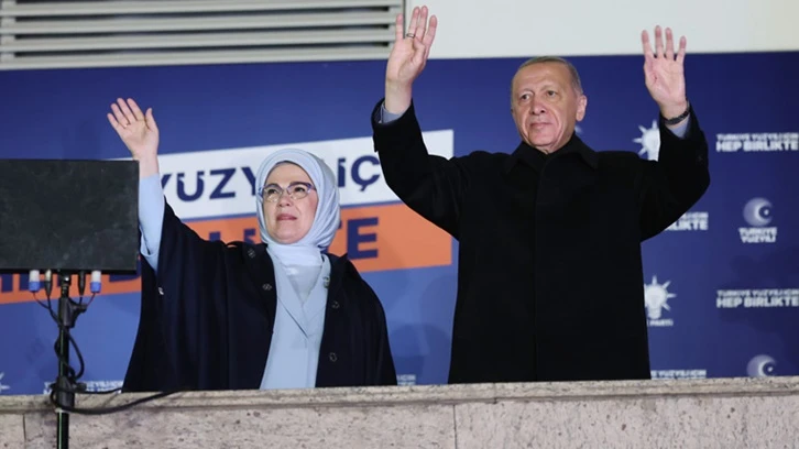 Erdoğan, "Biz sizleri çok seviyoruz. Neticesi burada. Bu sevdalıların buluşması. Birileri mutfakta bizler de balkonda. Ülkemiz 14 Mayıs seçimlerini ile demokrasi şöleni ile tamamladı. Henüz kesin sonuçlar belli olmamakla beraber açık ara öndeyiz" dedi.