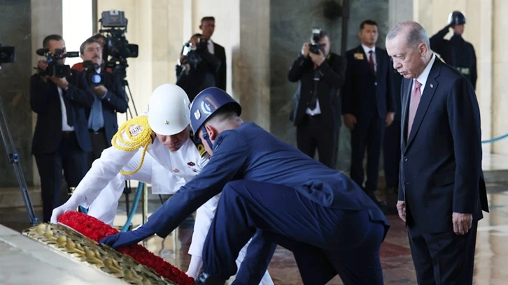 Mustafa Kemal Atatürk'ün mozolesine çelenk bırakan Erdoğan, saygı duruşunda bulunulması ve İstiklal Marşı'nın okunmasının ardından beraberindeki heyetle Misak-ı Milli Kulesi'ne geçerek, Anıtkabir Özel Defteri'ni imzaladı.