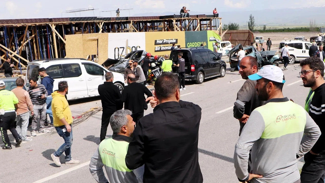 Yeni yerleşim alanındaki binaya beton taşıyan Serkan K. yönetimindeki 25 RA 980 plakalı beton mikseri inşaatta çalışan işçilere ait park halindeki 8 araca çarpıp yaklaşık 100 metre ilerideki inşaatın temeline düştü.
