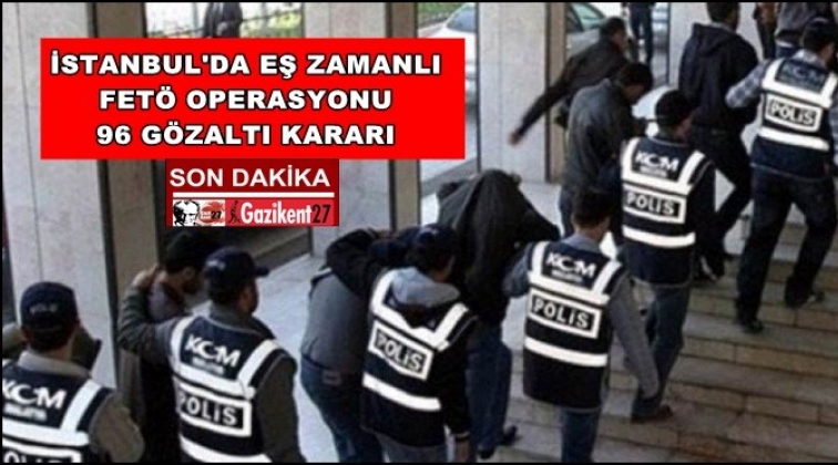 İstanbul’da FETÖ'ye yönelik eş zamanlı operasyon düzenlendi. Operasyonun, Kaynak Holding’e yönelik çalışmalarda ele geçirilen ve “Cennet Listesi” ibareli listede adı geçen 96 şüphelinin yakalanması için gerçekleştirildiği belirtildi.