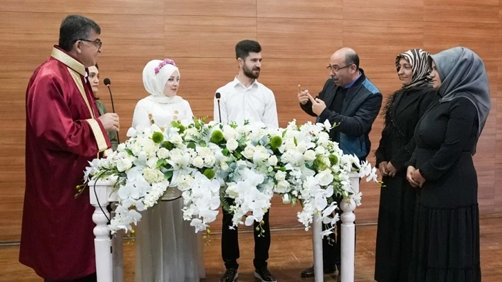 İşitme engelli çiftin nikahını kıyan Şehitkamil Belediye Başkanı Rıdvan Fadıloğlu, “Birbirinize karşı olan sevginiz, muhabbetiniz daim olsun” dedi.