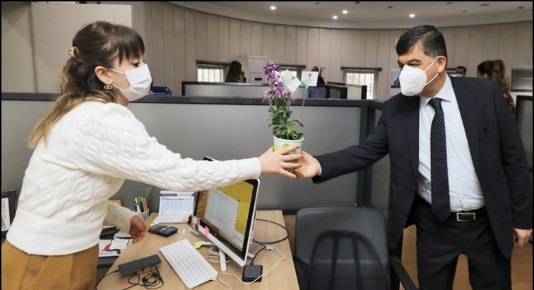Şehitkamil Belediye Başkanı Rıdvan Fadıloğlu, 8 Mart Dünya Kadınlar Günü dolayısıyla kadın personelleri çalıştıkları birimde ziyaret ederek çiçek armağan etti.