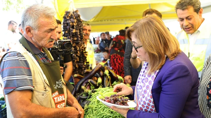 Gaziantep Büyükşehir Belediye Başkanı Fatma Şahin, Haydi Tarladan Sofraya Projesi kapsamında kurulan pazar yerinde çiftçilerden alışveriş yaptı ve sohbet etti.
