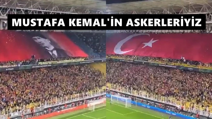 Maç öncesinde dev Türk bayrağı ve Atatürk posteri açan taraftarlar hepbir ağızdan “Mustafa Kemal’in Askerleriyiz” tezahüratı yaptı.