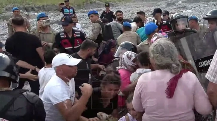 Ertaş’ın bölgeden ayrılması üzerine ise saat yaklaşık 18.00 civarında jandarma ekiplerinin koruması altında iş makineleri Akçay içine girerek suyun yönünü değiştirme çalışmasına başladı.Çalışmaya engel olmak isteyen köylülere jandarma ekipleri müdahale etti.