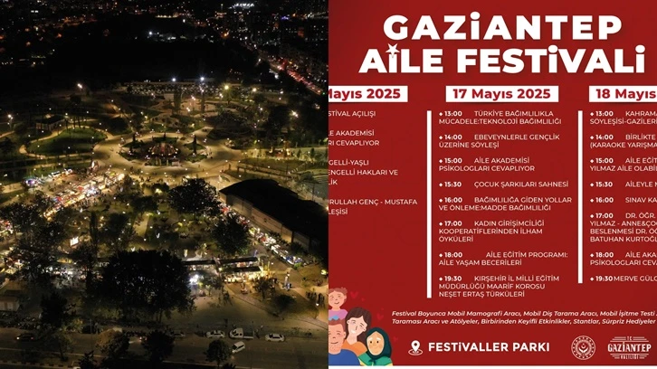 Cumhurbaşkanı Recep Tayyip Erdoğan’ın 2025 yılını "Aile Yılı" olarak ilan etmesiyle aile yapısının güçlendirilmesi amacıyla çalışmalarına hız veren Gaziantep Büyükşehir Belediyesi, festival için hazırlıkları tamamladı. Aile ve Sosyal Hizmetler Bakanı Mahinur Özdemir Göktaş ve Başkan Fatma Şahin’in katılımıyla açılacak festivalde yeni aile uygulaması tanıtılacak.