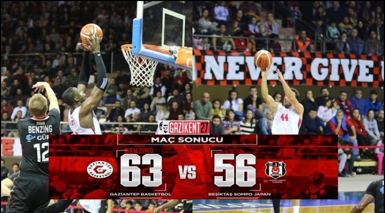 Tahincioğlu Basketbol Süper Ligi'nin 7'nci haftasında Gaziantep Basketbol, konuk ettiği Beşiktaş Sompo Japan'ı 63-56 mağlup etti.