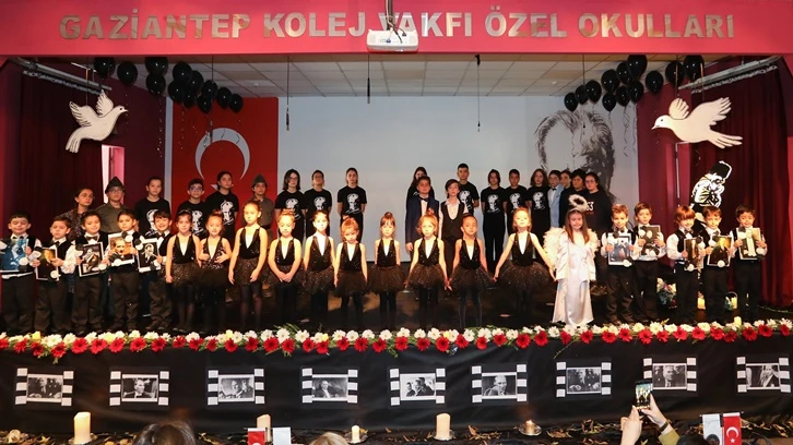 Gaziantep Kolej Vakfı Özel Okullarında düzenlenen törenle Gazi Mustafa Kemal Atatürk'ü vefatının 84.yıl hüzünle anıldı. 10 Kasım Atatürk'ü Anma ve Atatürk Haftası etkinlikleri kapsamında düzenlenen törende Atatürk’ün yaşamından kesitler anlatılırken öğrencilerin sahnelediği oratoryo izleyenleri hüzünlendirdi.