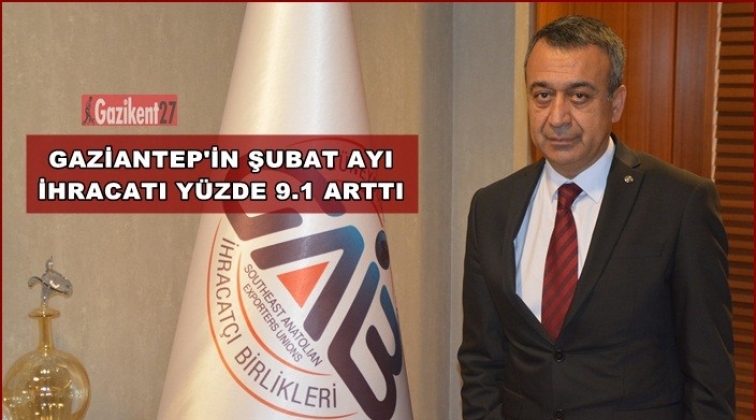 Güneydoğu Anadolu İhracatçı Birlikleri tarafından Türkiye İhracatçılar Meclisi verilerine göre yapılan yazılı açıklamada, GAİB’in Şubat 2019’da kayıt altına aldığı ihracatın 2018 yılının aynı ayına kıyasla %5,3 artışla 711,7 milyon dolar olarak gerçekleştiği ifade edildi. Gaziantep’in Şubat 2019 ihracatının ise önceki yılın aynı ayına göre % 9,1 artışla 593,3 milyon dolar olduğu açıklandı.