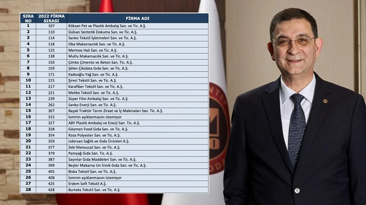 Gaziantep Sanayi Odası (GSO) Yönetim Kurulu Başkanı Adnan Ünverdi, İstanbul Sanayi Odası (İSO) tarafından gerçekleştirilen ’Türkiye’nin 500 Büyük Sanayi Kuruluşu 2022 Araştırması’na göre Gaziantep’ten 28 firmanın ilk 500 firma arasında yer aldığını kaydetti.