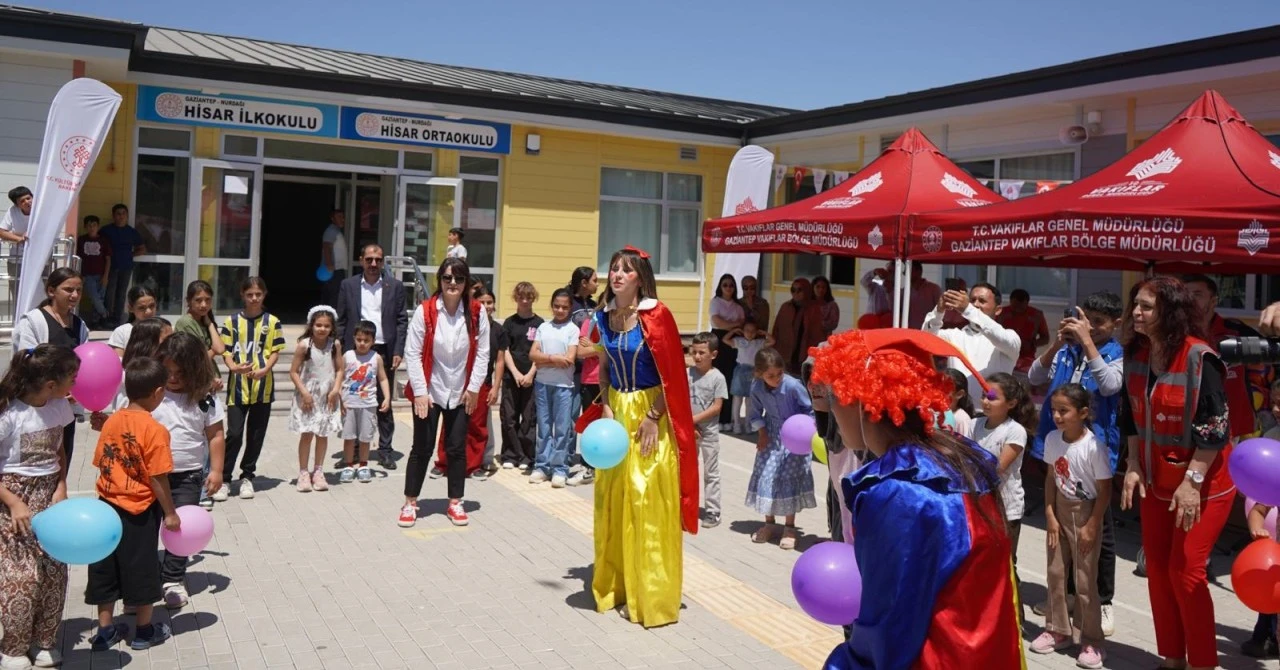 Gaziantep Vakıflar Bölge Müdürlüğü, Nurdağı ilçesinde bulunan Hisar İlkokulu ve Ortaokulu’nda öğrenim gören depremzede öğrenciler için düzenlenen karne şenliğine katılarak öğrencilerin mutluluğuna ortak oldu.