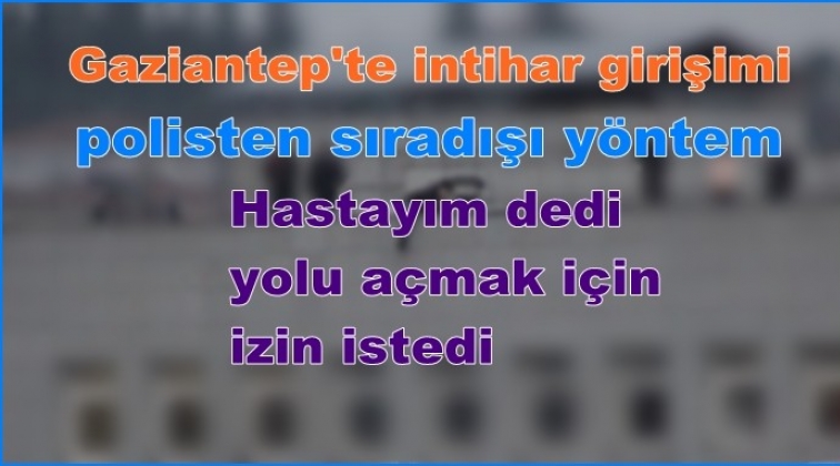 Edinilen bilgiye göre intihar girişimi akşam saatlerinde Gaziantep Valiliği karşısında kullanılmayan eski vergi dairesi binasında meydana geldi. Henüz bilinmeyen nedenlerle bunalıma girdiği öne sürülen M.K. (43), 8 katlı binanın çatısına çıktı. İntihar etmek isteyen M. K. caddeden geçen araçların üzerine çatıdaki kiremitleri atmaya başladı. Gaziantep'in en işlek caddelerinden Muammer Aksoy Bulvarı trafiğe kapatıldı. Bir türlü ikna edilemeyen M.K.'yı telefonla arayan polis, hasta olduğunu söyleyerek, yolu trafiğe açmak için M. K.'dan izin istedi. Bunun üzerine psikologların çabasıyla ikna edilen M. K. ifadesi alınmak üzere emniyete götürüldü. Yaklaşık bir saat süren intihar girişiminin ardından yol trafiğe açıldı.
