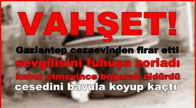 Gaziantep'te cezaevinden firar eden A. Ş. (31) sevgilisi D. İ.'yi (16) fuhuş yapmaya zorladı. 29 suçtan sabıkalı A. Ş., teklifini kabul etmeyen sevgilisi 16 yaşındaki D. İ.'yi boğarak öldürüp cesedini bavula gizledi.