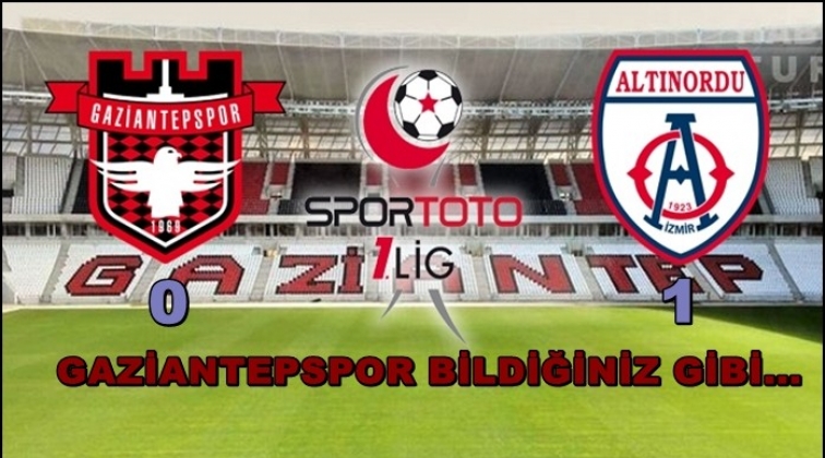TFF 1’inci Lig'in 23. haftasında Gaziantepspor, kendi sahasında konuk ettiği Altınordu’ya 1-0 mağlup oldu.