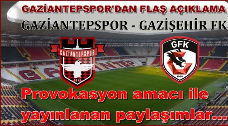 Gaziantepspor Kulübü bugün yapılacak Gazişehir Gaziantep F.K. maçı öncesi sosyal medyada yer alan paylaşımlarla ilgili açıklama yaptı.