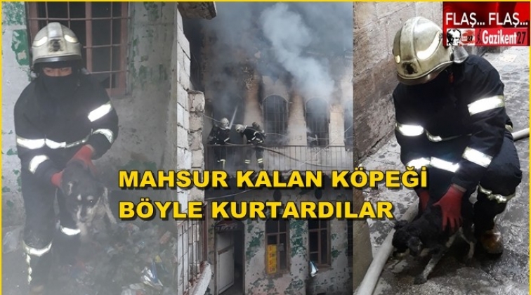 Gaziantep Büyükşehir Belediyesi İtfaiye Daire Başkanlığı ekipleri, 5 katlı binada çıkan yangında mahsur kalan bir yavru köpeği alevlerin arasından kurtardı.