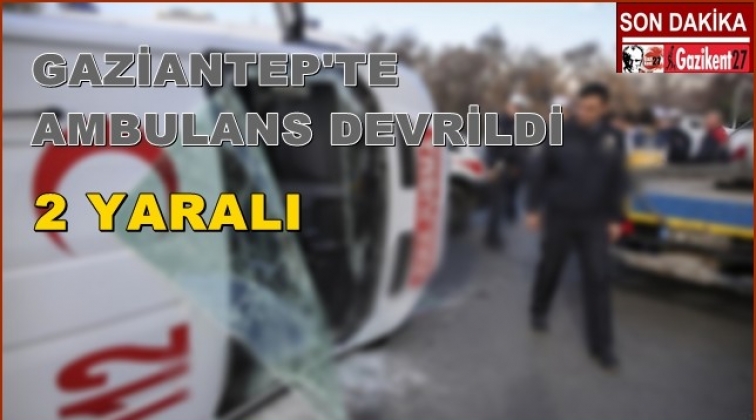 Gaziantep'in İslahiye ilçesinde mülteci kampından hasta götüren ambulans dönüşte kaza geçirerek devrildi. Kazada 2 kişi yaralandı.