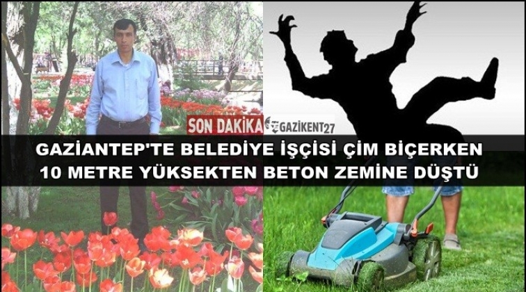 Gaziantep'te parkta çim biçtiği sırada dengesini kaybeden 46 yaşındaki belediye işçisi Murat Budak, 10 metre yüksekten beton zemine düşerek feci şekilde yaşamını yitirdi.