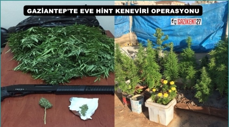 Gaziantep'te bir eve düzenlenen uyuşturucu operasyonunda 35 kök dişi hint keneviri, 1 adet pompalı tüfek ve 6 gram esrar maddesi ele geçirildi. Olayla ilgili 3 kişi gözaltına alındı.
