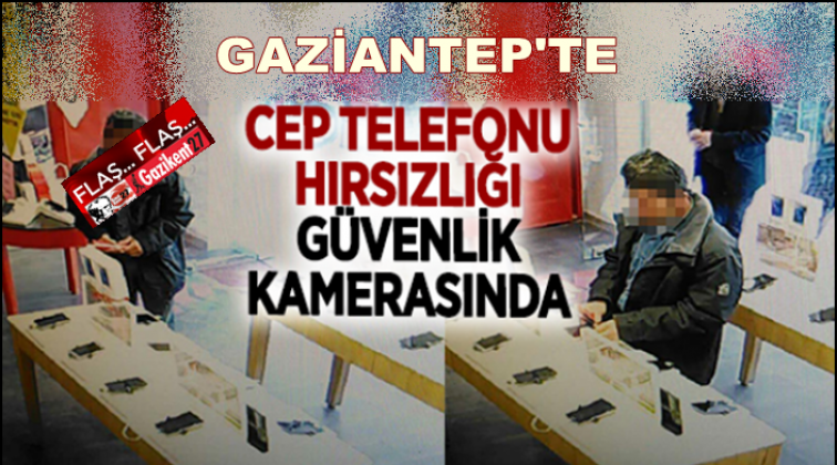 Gaziantep'te bir iş yerine müşteri olarak giren hırsızlık zanlısı, herkesin gözü önünde işletme sahibinin masadaki cep telefonunu çalarak kayıplara karıştı. Hırsızlık ise güvenlik kamerası gürüntülerinden anlaşıldı.