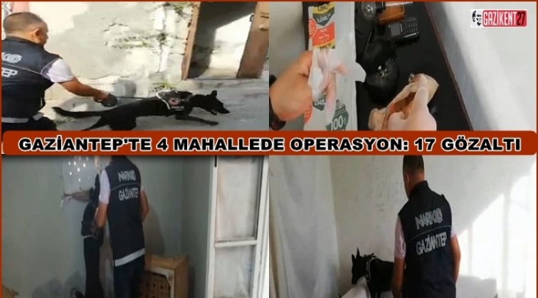 Gaziantep'te 4 adrese düzenlenen eş zamanlı uyuşturucu operasyonunda 17 kişi gözaltına alındı.
