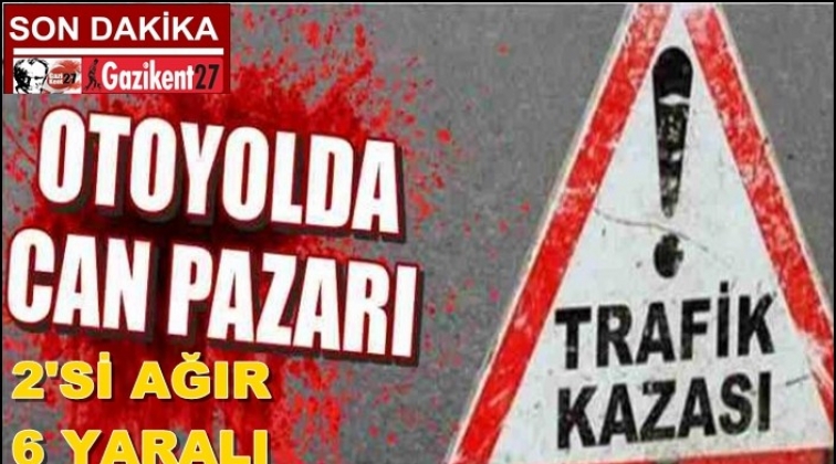 Gaziantep- Şanlıurfa karayolunda meydana gelen feci kazada 2'si ağır 6 kişi yaralandı. Kazada ağır yaralanan otomobil sürücüsü ile eşinin hayati tehlikesi sürüyor.