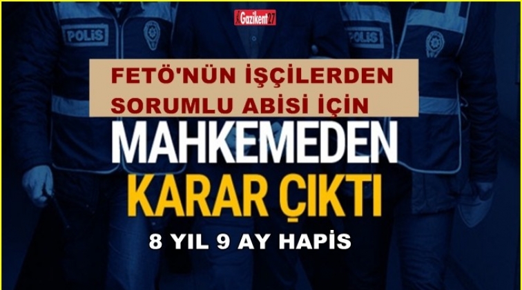 Gaziantep'te terör örgütü FETÖ'nün işçilerden sorumlu abisi olduğu iddiasıyla yargılanan eski öğretmen Halil Durdu'ya 8 yıl 9 ay hapis cezası verildi.