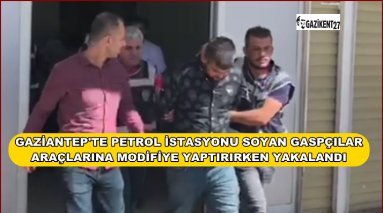 Gaziantep'te bir petrol istasyonunu görevlinin başına tabanca dayayarak soyan gaspçılar, araçlarına modifiye yaptırırken polis tarafından yakalandı.