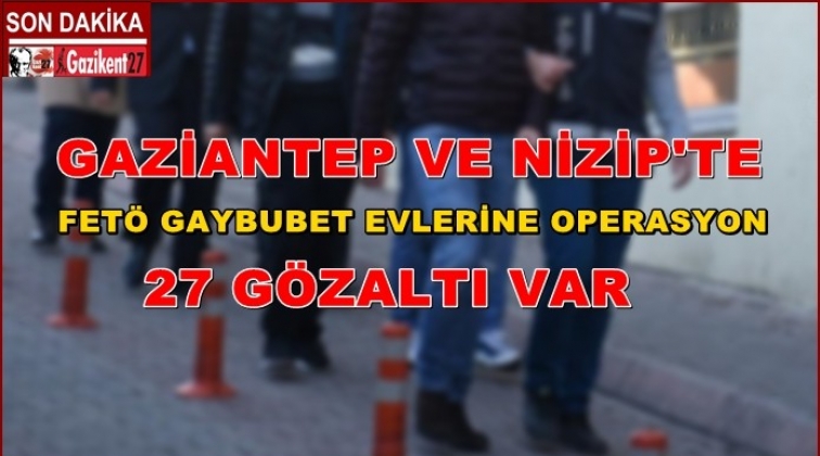 Gaziantep ve Nizip'te FETÖ/PDY soruşturması kapsamında, örgüt üyelerinin "gaybubet evleri" olarak adlandırdıkları evlere düzenlenen operasyonlarda 27 kişi gözaltına alındı.