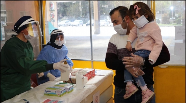 Korona virüs salgını ile mücadele ve salgının yayılmasını önlemek için Gaziantep'te bazı hastanelerin önlerinde ücretsiz maske dağıtımı başladı.