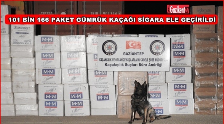 Gaziantep'te polisin iki araca yönelik operasyonunda 101 bin 166 paket gümrük kaçağı sigara ele geçirildi.