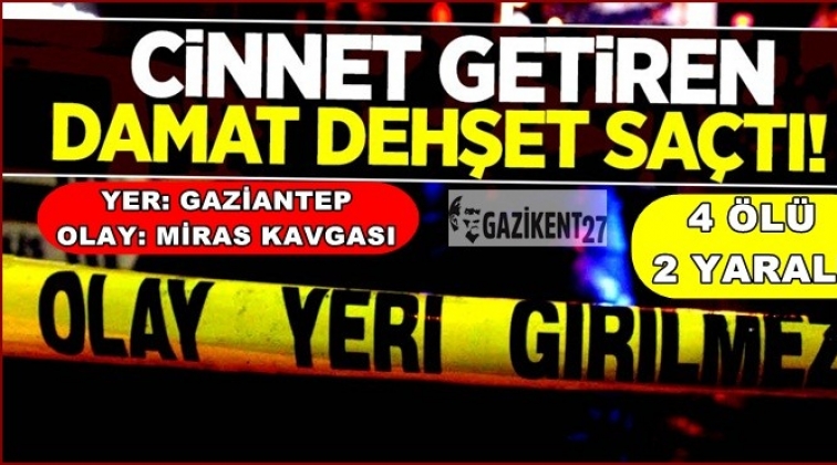 Gaziantep'te, cinnet getiren damat miras nedeniyle çıktığı iddia edilen kavgada eşinin akrabalarına silahlı saldırı düzenledi. Saldırıda 4 kişi öldü, 2 kişi yaralandı.
