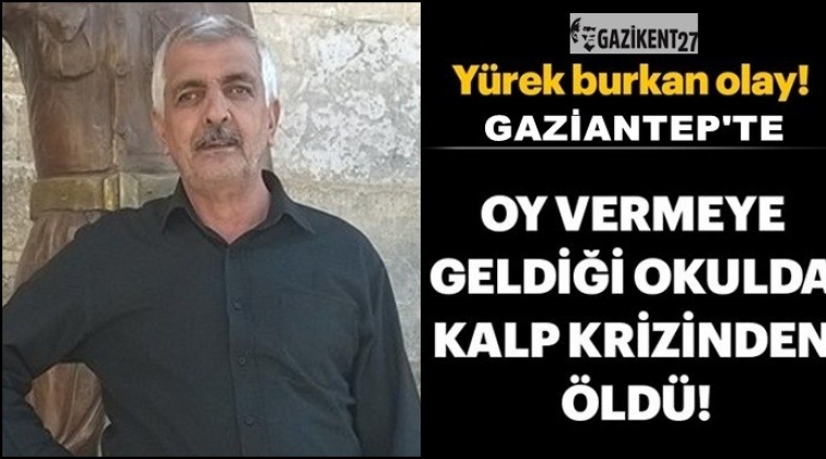 Edinilen bilgiye göre, İslahiye ilçesi Serinevler Mahallesi'nde ikamet eden Feramus Merdan (62), oy kullanmak için geldiği Şehit İsmet Kayar Ortaokulu'nda oy kullandıktan sonra başka bir sandıkta görevli olan kızını görmeye giderken okulun koridorunda kalp krizi geçirdi. İslahiye Devlet Hastanesi'ne kaldırılan Merdan kurtarılamadı.