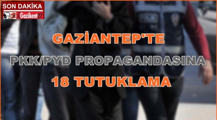 Gaziantep Cumhuriyet Başsavcılığı tarafından silahlı terör örgütü PKK/PYD'ye yönelik soruşturma kapsamında terör örgütü adına propaganda yaptıkları tespit edilen 19 kişiden 18'i terör örgütü propagandası yapmak suçundan sevk edildikleri Nöbetçi Sulh Ceza Hakimliğince tutuklanırken, 1 kişi ise adli kontrol şartıyla serbest bırakıldı.